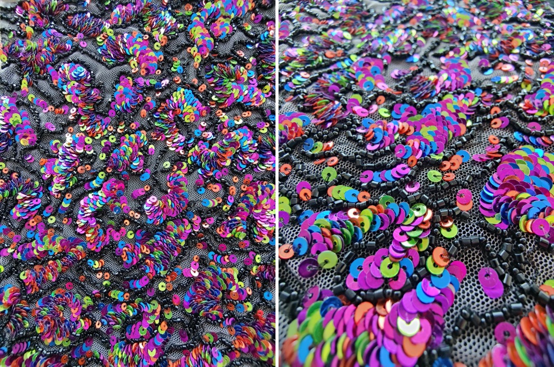 We took a panned out look of this beautiful chapel, captured its jaw-dropping colours and intricate details to create this design with metallic sequins. It is a simpler take on the architectural style, however, it takes over 22 hours to create this small swatch. This is because the sequins have to be meticulously hand-picked to achieve the right balance of colours.