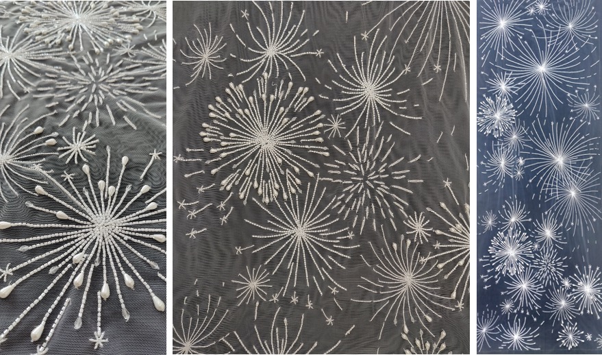 Today, we present to you 5 of our beaded fabrics that are perfect for this- light- weight yet couture-quality. These are also great for bridal designers that are just about starting out with beaded gowns- low-investment fabrics to test out demand before you go in for an elaborately beaded collection.